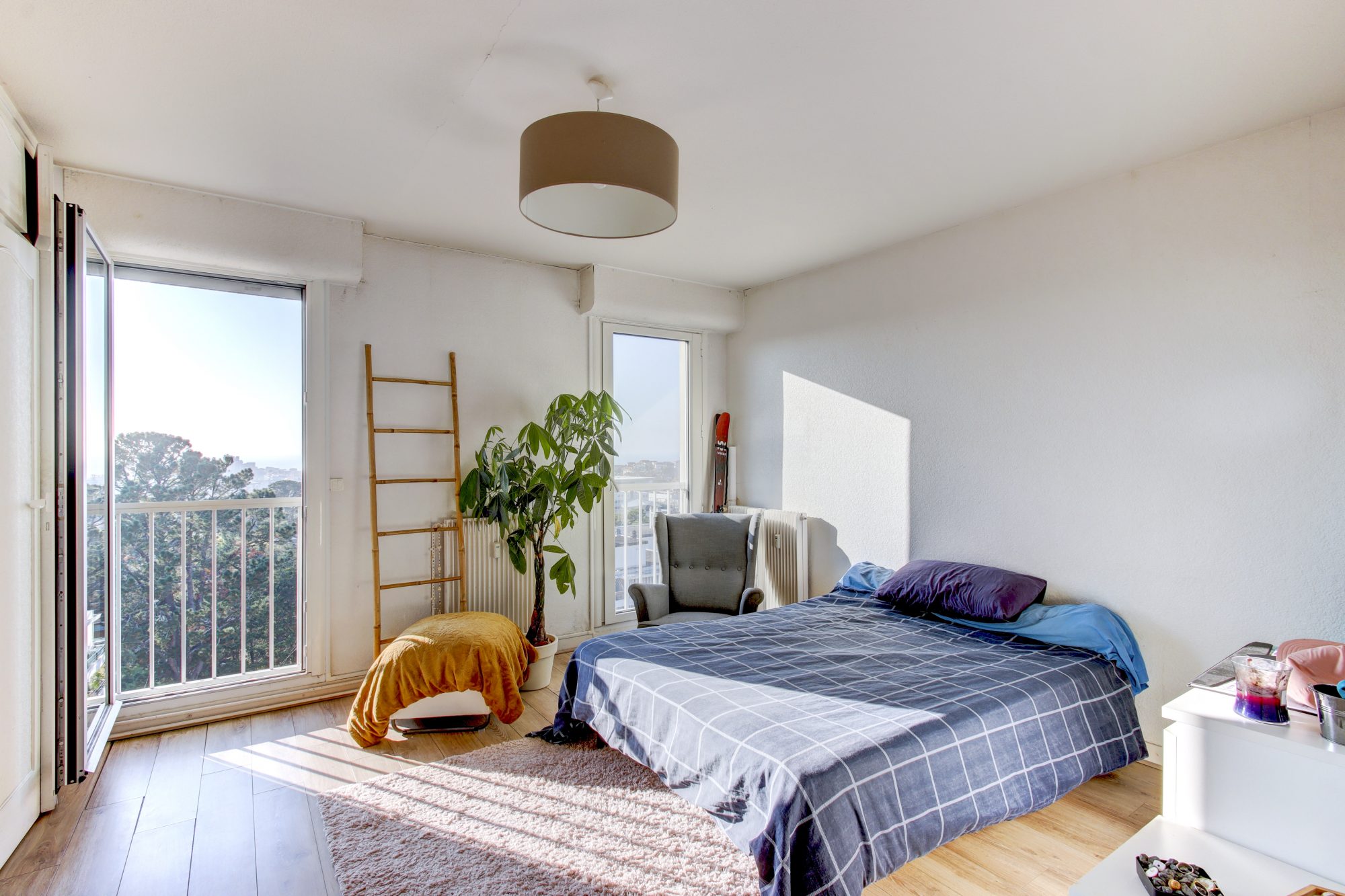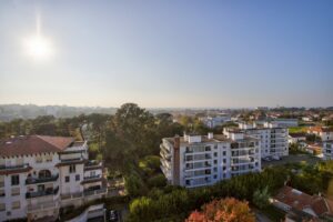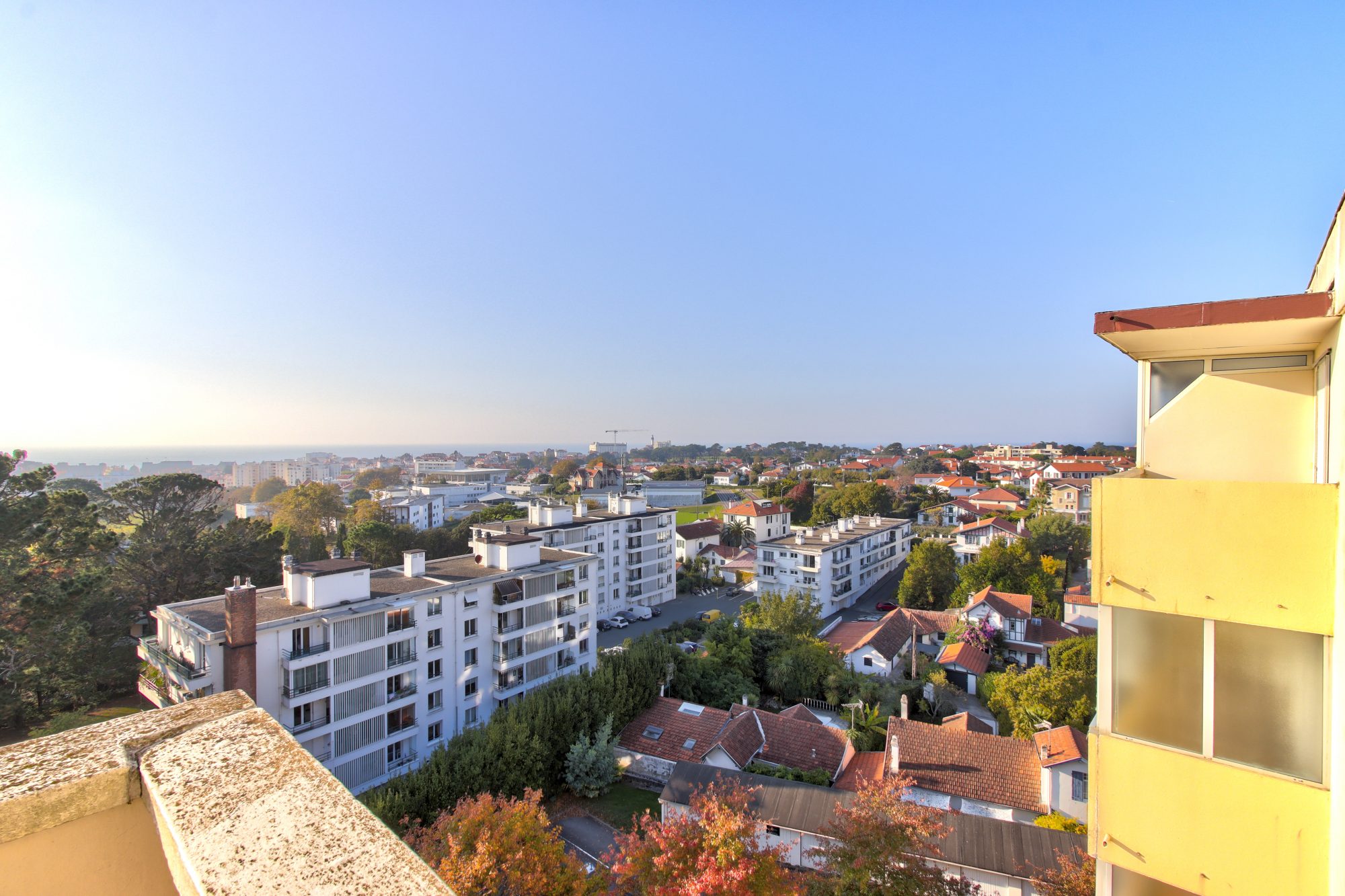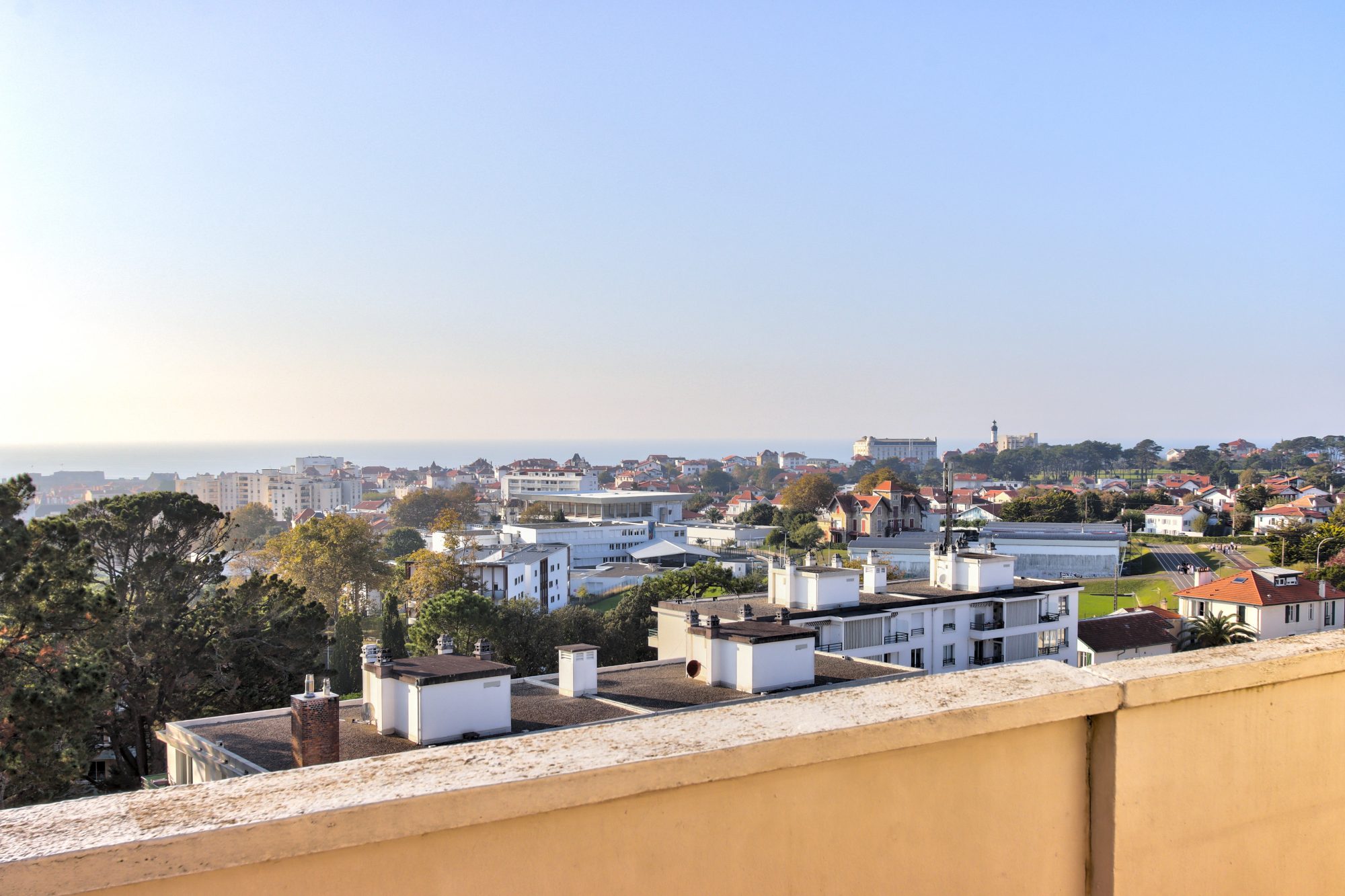 Une pièce de vie avec une terrasse profitant d'un panorama unique sur les toits biarrots, les montagnes et l'océan, 3 chambres dont une avec balcon attenant et une sdb occupent aujourd'hui l'espace.