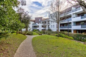 Anglet, à proximité immédiate des commerces des Cinq Cantons, cet appartement de 83m² avec terrasse et jardin occupe le rdc d'une résidence récente.