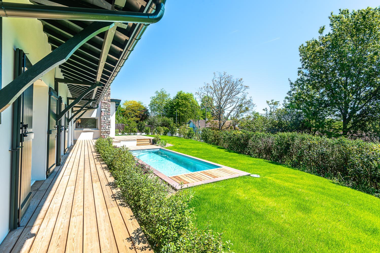 A l'extérieur, vous profiterez d'un beau jardin paysagé de plus de 1 700 m2, de terrasses plein sud et d'une piscine chauffée.