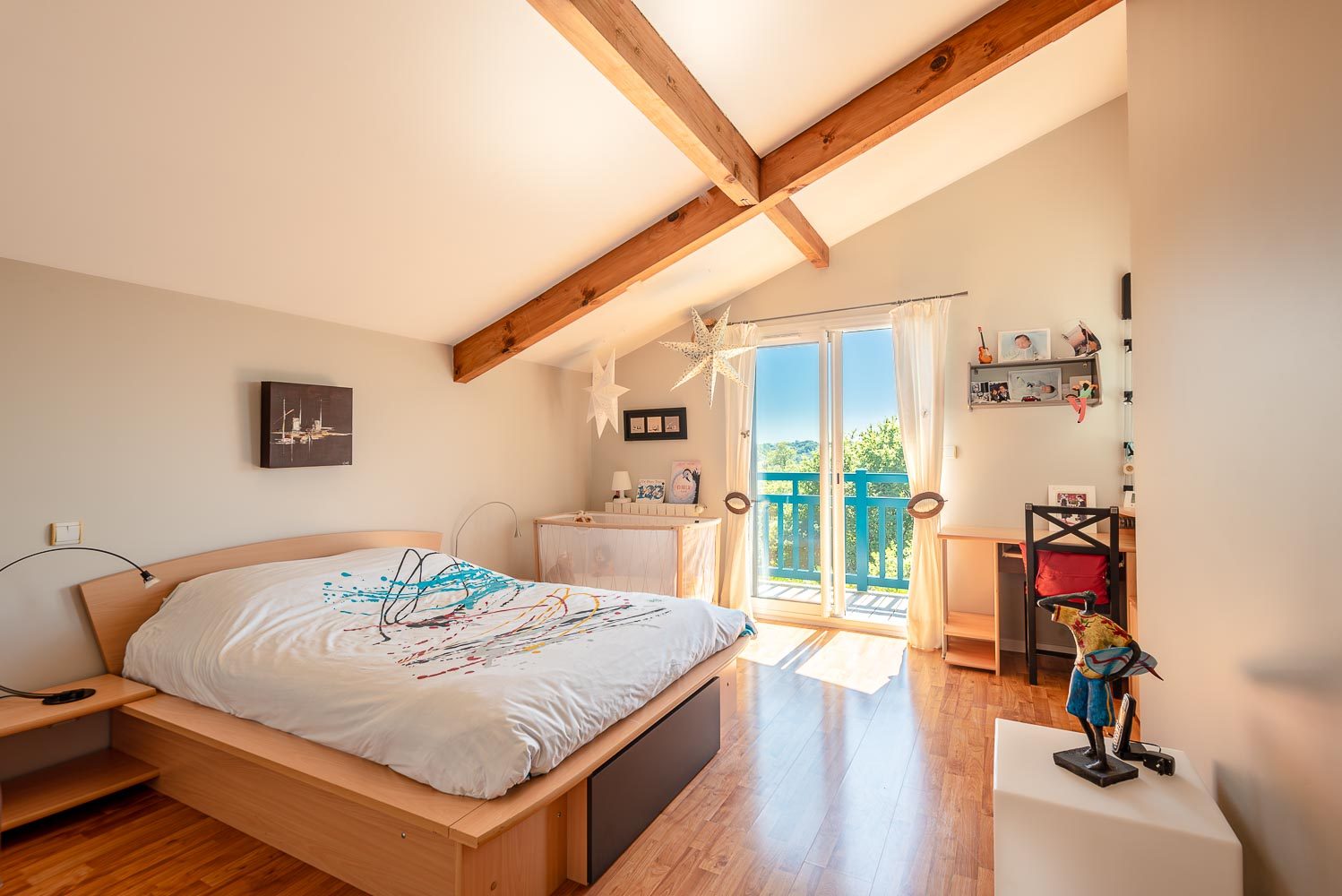 Un espace bureau / coin TV , une cuisine aménagée et équipée, une buanderie et une chambre parentale complètent ce premier niveau.3 chambres dont une suite avec balcon, une salle d'eau et un vaste dressing prolongé par un grenier occupent l'étage.