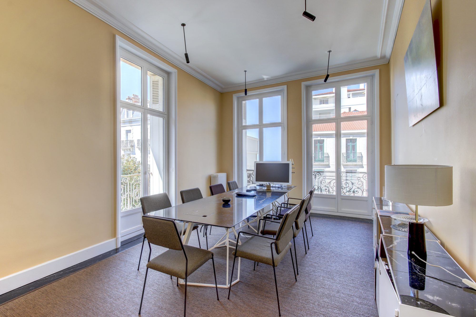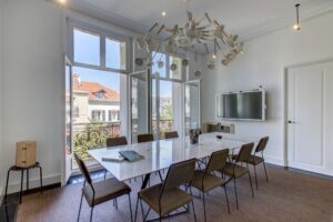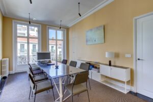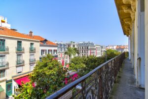 Biarritz, place Clémenceau, cet appartement de charme de plus de 180m² actuellement exploité en bureaux bénéficie d'un emplacement prisé au cœur de la ville et profite d'une vue sur l'océan depuis son balcon filant.